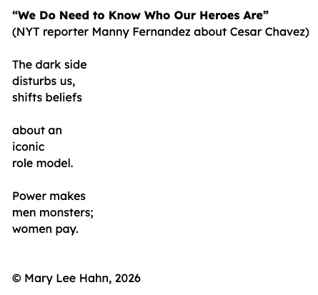 Yes!!! Room for everything! Thank you for your searing and timely poem about Cesar Chavez. “women pay” indeed. Very sad and so true.