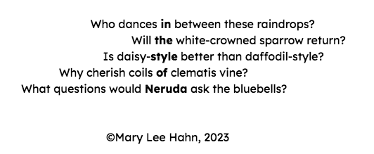 Now more than ever, it is a blessing to be in community. I give thanks for this generous chorus of poets who have come together to create a poem for children, line by line. Special thanks to Margaret who wrangled us all together and to Irene, who invented this Poetry Month tradition.