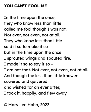 This month, Linda (A Word Edgewise) challenged the Inklings to “Find or write a poem in any form of any length for Folktale Week November 14-20, 2022.” I came up with three that are worth sharing.