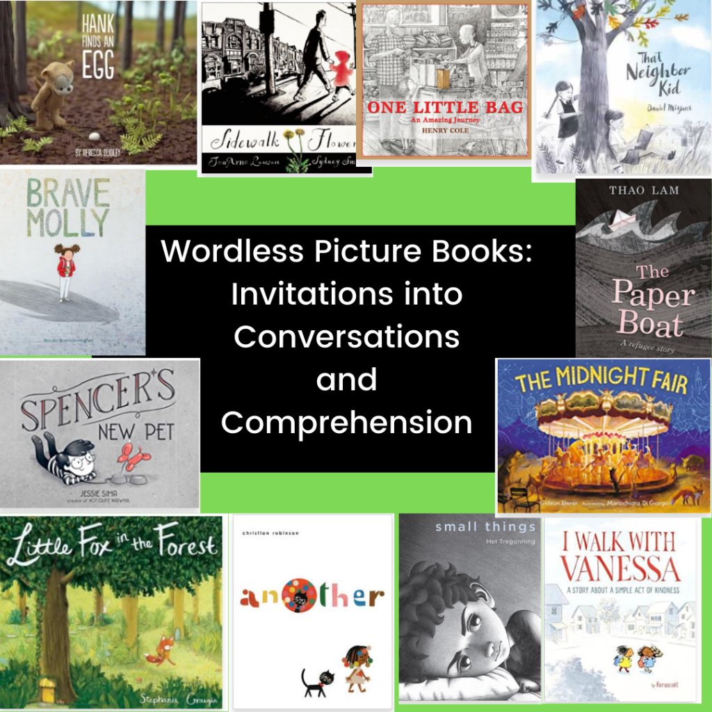I want readers to know right away that there is a lot of thinking that happens when we read wordless books. And I also want to share books that they can’t help but talk about. By starting with books that leave you thinking, pondering, wondering and revisiting, readers of all ages can see all that wordless picture books have to offer and then eventually transfer those skills to all types of reading. Spencer’s New Pet and Another are two that I have used with readers of all ages. They are books that invite conversations, changes in thinking, inferring possibilities, rereading and more. A lot of thinking is required in each of these fabulous books!