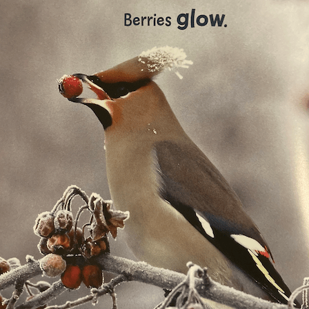 My favorite rhymes in ON A FLAKE-FLYING DAY are the ones that start the book off: “On a feather-fluffing, seed-stuffing, cloud-puffing day…” My favorite photo is the frosty-topped cedar waxwing practically posing with a berry in its beak: